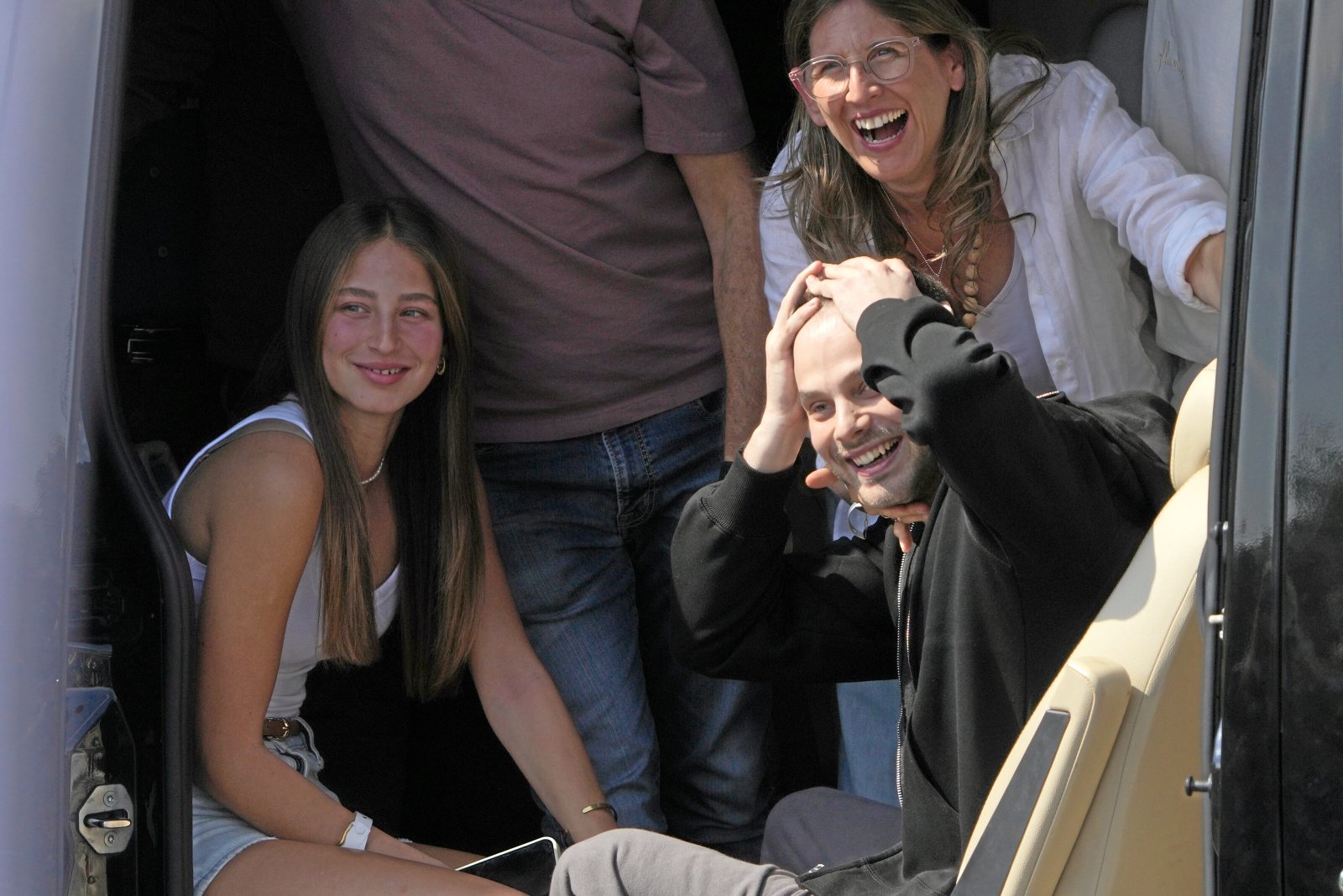 Küsschen zum Sieg. Axel Strasser feiert mit seiner Verlobten den...