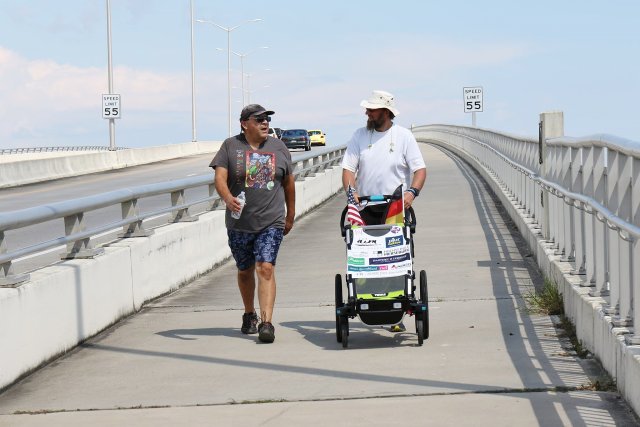 Die hätte Robby die letzten Tage besonders gut brauchen können. Denn es ist extrem heiß, rund 34 Grad Celsius. Hinzu kommt, da er immer am Golf von Mexiko entlang lief, eine extrem hohe Luftfeuchtigkeit. »Ich trinke zwischen sechs bis neun Liter Wasser am Tag, die sind aber schneller wieder ausgeschwitzt, als ich nachfüllen kann. Auch das Meer lädt nicht gerade zum Abkühlen ein, denn die Wassertemperaturen liegen gar nicht so weit von der Badewanne entfernt.«