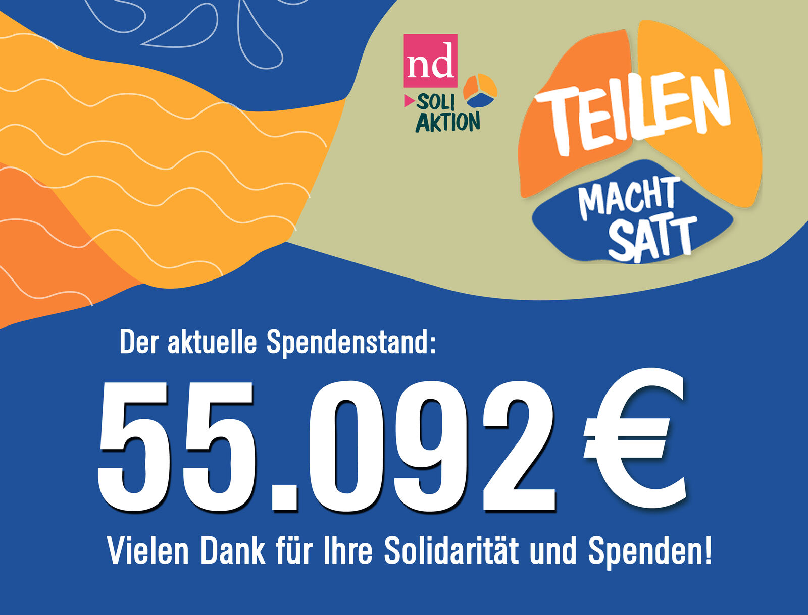 Liebe Leserinnen und Leser, das neue Jahr hat begonnen - und die nd-Soli-Kampagne biegt auf die Zielgerade ein. Das Spendenziel von 70 000 Euro liegt in Reichweite: Über 55 000 Euro sind schon geflossen! Dafür herzlichen Dank, aber da geht noch mehr. Es bedarf nicht viel, um zu helfen: Mit Summen von 40 bis 150 Euro kann Bauernfamilien in Senegal, Nepal oder Ghana lebenswichtige Unterstützung zuteilwerden. Zum Beispiel, um in Senegal mit einer Solar-Wasserpumpe einen Beitrag zu einer ökologisch und wirtschaftlich nachhaltigen Landwirtschaft zu leisten. Oder in Nepal kleinbäuerlichen Familien mit ökologisch wertvollem Saatgut beim Kampf gegen die Unterernährung zu helfen. Und in Ghana gilt es, die Kakaobauern zu stärken, damit sie faire Preise durchsetzen können. Für die Solidaritätskampagne »Teilen macht satt« (www.nd-aktuell.de/soliaktion), die »nd« mit SODI, INKOTA und Weltfriedensdienst veranstaltet, bitten wir weiter um Ihre Solidarität. Jeder Mensch hat das Recht auf ein würdiges Leben!