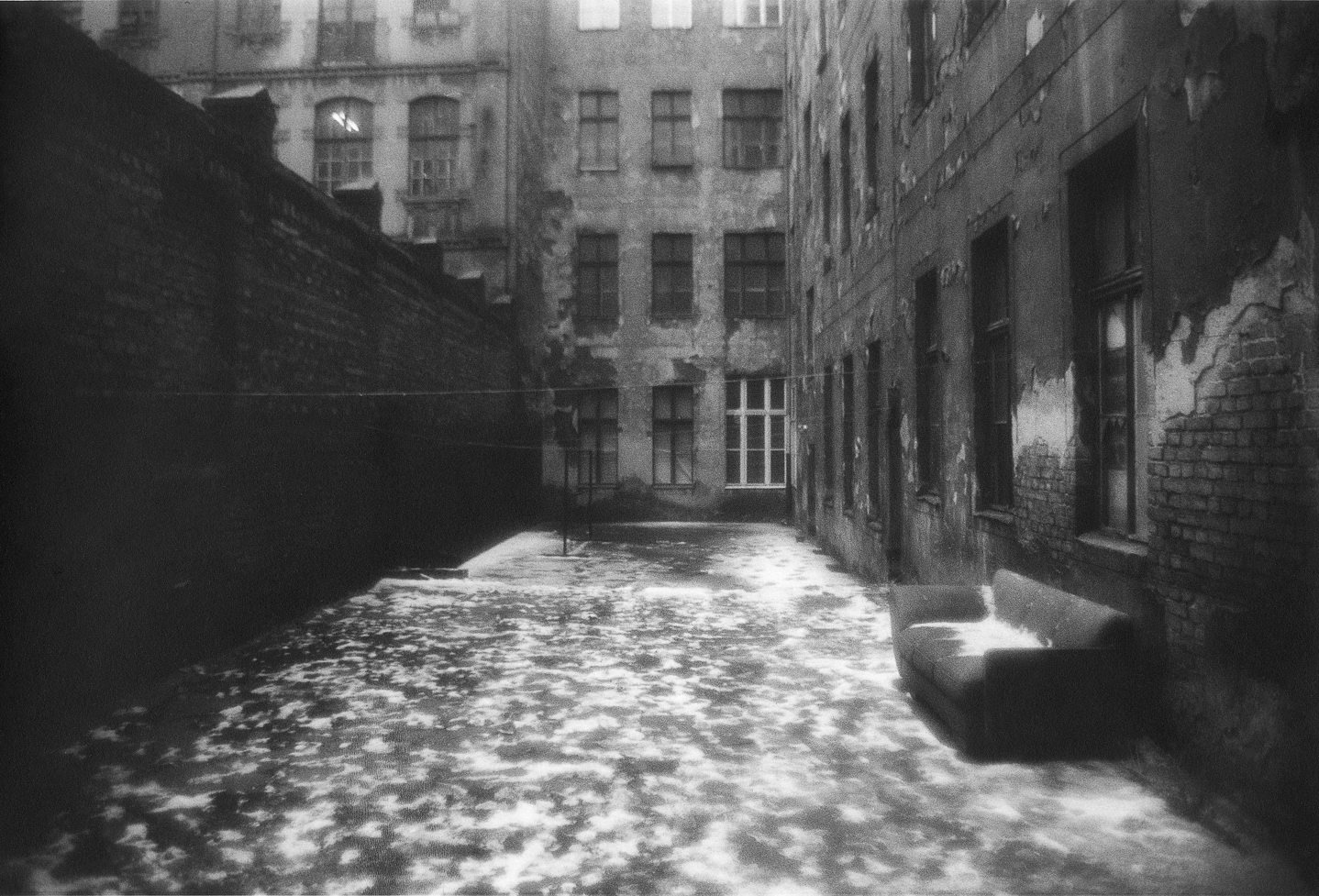 Glich das Leben in den heruntergekommenen Mietskasernen, die heute ja oft als subkulturelles Paradies verklärt werden, tatsächlich dem Treiben der Protagonisten in Aki Kaurismäkis Film »Das Leben der Bohème«? In diesem schlagen sich drei Künstler im Paris des 19. Jahrhunderts durchs Leben und führen ein recht trostloses Dasein. Den poetischen Realismus des französischen Vorkriegsfilms, dem Kaurismäki ein Denkmal setzte, findet der Betrachter in den Fotografien von verlassenen Ostberliner Straßen, Häusern und Hinterhöfen tatsächlich wieder - die düstere Alltagswelt und die pessimistische Grundhaltung scheinen dieselbe. Selbst für DDR-Verhältnisse, wo es es ja oft so schien, als sei in den Dörfern und Städten die Zeit stehen geblieben und die Nachkriegszeit konserviert, strahlen Steffens Abbilder des urbanen Raums eine rätselhafte Entsagung aus, verstärkt durch die Abwesenheit der Menschen. Ein Hauch Existenzialismus weht durch die Seiten.