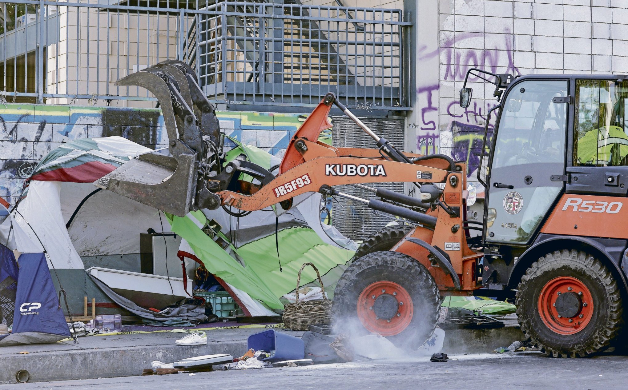 Ich verstehe nicht, wie das alles funktioniert», sagt Eddie. «Gerade eben noch hieß es, die Polizei würde uns in Ruhe lassen und wir würden alle Wohnungen bekommen. Und nur ein paar Tage später läuft es für uns nur noch schlecht.» Eddie, der seinen echten Namen nicht nennen möchte, ist um die 50 und sitzt mit seiner Freundin Sally auf dem Bürgersteig, während eine Gruppe von Arbeitern auf der gegenüberliegenden Straßenseite ihr ehemaliges Zuhause in Müllcontainer wirft. Es sind etwas mehr als 30 Grad in Sacramento, Kalifornien, die beiden sitzen in der prallen Mittagssonne vor der Einfahrt einer Privatklinik.