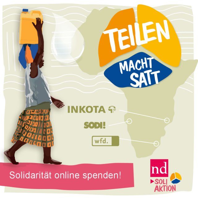 Die nd.Soliaktion, die wir gemeinsam mit SODI, INKOTA und Weltfriedensdienst durchführen, ermöglicht Menschen, eine lebenswerte Zukunft selbst zu gestalten. Helfen Sie mit und machen Sie den Unterschied – gemeinsam für eine lebenswerte Zukunft. Zum Spendenformular >>
