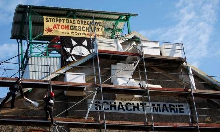 Atomkraftgegner haben dem Endlager Morsleben gestern Vormittag einen Blitzbesuch abgestattet und einen Teil der Anlage für rund eine Stunde besetzt. Wie Kerstin Rudek von der Bürgerinitiative (BI) Lüchow-Dannenberg dem ND sagte, waren vier Leute gegen elf Uhr auf einen Turm von »Schacht Marie« geklettert und hatten dort mehrere Transparente entrollt. Über den Turm werden die Abluft und damit auch radioaktive Stoffe aus dem Endlager in die Luft geblasen.