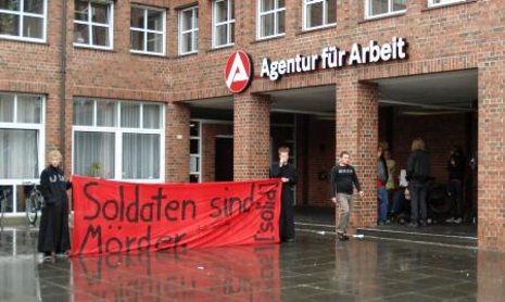 In Köln soll es sogar Sanktionsandrohungen gegen Arbeitslose gegeben haben, die sich weigerten, zu Bundeswehr-Rekrutierungsveranstaltungen zu gehen. Wie wichtig die Vermittlungsrolle der Arbeitsagenturen für die Armee ist, zeigt das Beispiel Hamburg: Von 328 jungen Menschen, die im Januar 2007 in der Hansestadt ihren Dienst bei der Bundeswehr antraten, waren 107 zuvor arbeitslos.