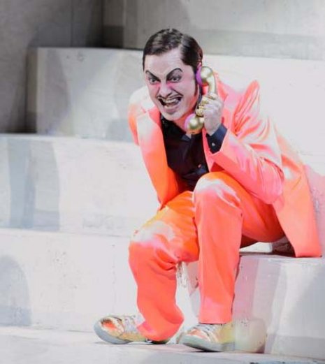 Balázs Kovaliks Regie verlässt sich auf die Möglichkeiten, die die wuchtige Treppen/Ruinen-Installation, die Ilya und Emilia Kabakov auf die Drehbühne gesetzt haben, für ein Treppe-rauf-und-Treppe-runter bietet. Der riesenhaft aufgeblähte Apfel der Erkenntnis, ein Motorrad für den Trip aufs Dach der Welt oder schwebende Homunculus-Kugeln werden da zu gefälligen Accessoires. Bejubelt wurde diese Uraufführung dennoch. Aber es gilt: Vorhang zu und viele Fragen offen.