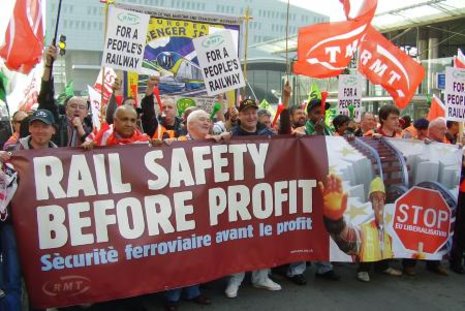 »Gewerkschaften in Europa lehnen einmütig die systematische Zerschlagung integrierter nationaler Eisenbahnunternehmen, die Vernichtung von Arbeitsplätzen und die Untergrabung von Sicherheitsstandards ab, wie sie durch die Umsetzung von EU-Richtlinien zur weiteren Liberalisierung drohen«, erklärte RMT-Generalsekretär Bob Crow, der zusammen mit 200 Mitgliedern seiner Gewerkschaft durch den Kanaltunnel nach Lille gekommen war. »Liberalisierung mag sich harmlos anhören, aber schwere Zugunglücke wie der Zusammenstoß zweier Pendlerzüge bei Brüssel im Februar sprechen eine andere Sprache«, so Crow.