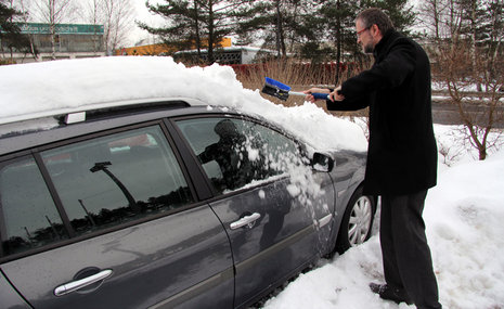 Übrigens kann die Polizei solche Autofahrer anhalten und ihnen die Weiterfahrt erst dann erlauben, wenn der Schnee vom Dach gefegt ist und alle Scheiben eisfrei sind.