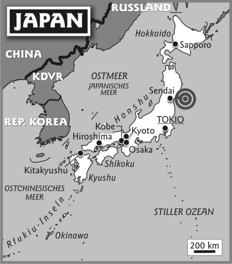 Fernsehbilder zeigten eine gewaltige Flutwelle, die auf die Ostküste traf. Boote wurden gegen die Küste geschleudert und Autos ins Meer gespült. Sendai liegt 130 Kilometer westlich des Epizentrums. Das Beben ereignete sich gegen 14.45 Uhr Ortszeit (06.45 Uhr MEZ).
