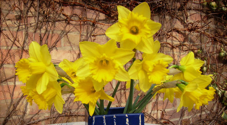 Auch wenn Ostern noch weit ist, geben die vorgetriebenen Frühlingsboten schon mal auf der Fensterbank ein Konzert – eines für Augen und Nase. Osterglocken, Narcissus pseudonarcissus, (Foto: B. Müller) strahlen nicht nur in leuchtendem Gelb, sie wecken auch Frühlingsgefühle mit ihrem Duft. Narzissen sind nicht nur Lenzkinder; bis in den Sommer hinein können sie im Garten blühen. Aus den etwa 50 wilden Arten wurde eine unübersehbare Zahl von Sorten gezüchtet und in elf Klassen eingeteilt. Nimmt man die einzigen nicht winterharten Tazetta-Narzissen hinzu, die zwischen Herbst und Frühling blühen, dann kann das ganze Jahr über Narzissenzeit sein.