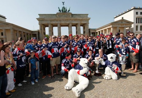 Mit tausenden Anhängern feierten die Eisbären Berlin ihren Meistertitel – und sorgten für ein Verkehrschaos. Mit über einer Stunde Verspätung erreichten sie am Sonnabend ihre Heimspielstätte. »Ich hoffe, dass wir mit unseren Leistungen etwas zurückgeben konnten für eure unglaubliche Unterstützung«, sagte Kapitän Stefan Ustorf. In Cabrios wurden die Spieler durch die Stadt kutschiert. Nach dem Start am Kürfürstendamm fuhr der Autokorso, dem sich rund 300 Wagen mit Fans angeschlossen hatten, zum Brandenburger Tor und weiter zur Arena am Ostbahnhof. dpa
