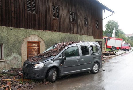 Berlin (dpa/ND). Bei schweren Unwettern in Deutschland sind in Baden-Württemberg zwei Frauen ums Leben gekommen. Mehrere Menschen wurden bei den heftigen Gewittern mit Blitz und Hagel am Mittwochabend verletzt. Straßen waren überflutet, Dächer wie auf dem Foto in Oberbayern abgedeckt. Eine 57 Jahre alte Frau ertrank im Bodensee bei Radolfzell, als ihr Kanu kenterte, eine 77-Jährige wurde in Konstanz von einem eingestürzten Erdbeerstand begraben. Sie starb später im Krankenhaus. Bei etwa 50 000 Kunden der Envia Mitteldeutsche Energie AG in Sachsen, Sachsen-Anhalt und Brandenburg fiel zeitweise der Strom aus.