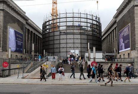 (ND-Brost). Am Montagvormittag wurde in Anwesenheit des ausführenden Architekten Anuschah Behzadi im Pergamonmuseum das Richtfest für eine Panorama-Rotunde begangen. Die 28 Meter hohe Gerüstkonstruktion im Ehrenhof des Museums ist ein Gemeinschaftsprojekt der Generaldirektion der staatlichen Museen zu Berlin und des in Wien geborenen Panoramakünstlers Yadegar Asisi. Ab dem 30. September wird im Inneren des drei Millionen Euro teuren Baus ein 360-Grad-Panoramabild des antiken Pergamon zu sehen sein. Die durch Licht- und Toneffekte ergänzte Installation wird durch einen Aussichtsturm mit Besucherplattformen vervollständigt. Sie ist Teil der bis zum 30. September 2012 laufenden Ausstellung »Pergamon – Panorama der Antike«. Der Vorverkauf für die vom Museum erwarteten 1,8 Millionen Besucher hat bereits begonnen.