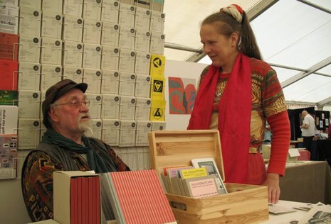 Es zieht im Eingang des Messezelts, unruhig fährt der Wind unter jedes lose Blatt. Mainz, Minipressenmesse, 2011: Wer noch an die subversive Kraft des gedruckten Wortes glaubt, ist hier, auf der Buchmesse der Kleinverlage, richtig. Hier gibt es handgesetzte Bücher, schräge Prints von Kleinstverlagen, viel Kunst, ein bisschen Kunstgewerbe. Und bei jeder der zweijährlich stattfindenden Messen wird der V.O.Stomps- Preis verliehen, benannt nach dem Gründer der berühmten Eremitenpresse, an dessen Arbeit sich seit den 1960er Jahren eine ganze Bewegung von Hand- und Selberdruckern orientiert. Else Gold hat den Preis noch nicht bekommen. Tiefer im Zelt, im Gedränge, wo man die Sonne überm Textildach spürt, verkaufen sie und Wolfgang E. Herbst kleinformatige Zeitschriften und in sackgrobes Papier gebundene Bücher. Seit 2005 kommen sie gemeinsam zur »Minipresse«. Herbst hatte eigentlich schon 2003 nicht mehr hier sein wollen, kam doch, saß zeichnend hinter dem Verkaufstisch, die Mappe vor sich wie einen Schlagbaum. Gold hatte ihren Platz schräg gegenüber, beim Viktoria Verlag Meißen. Und nicht bloß, weil alle sich bei solcher kleinen Messe schnell kennenlernen, sondern weil sie einen so genauen Blick auf seine Arbeit warf und so kluge Worte fand, dass er sich begriffen fühlte, wurde das der Anfang ihrer gemeinsamen Kunst- und Lebensgeschichte.