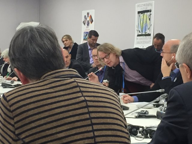 Gleich Beginn der Pressekonferenz von Umweltministerin Hendricks, Briefing zum aktuellen Verhandlungsstand. Mir geht noch der gestrige Abend durch den Kopf. Fragt man einen Inder, was Klimawandel für ihn bedeutet, dann bekommt man diese Antwort: Immer mehr Männer, Frauen und Kinder im ländlichen Indien werden zu Vertriebenen im eigenen Land. Weniger Regen fällt, Felder verdorren, Vieh steht mit trockener Zunge am Gatter. Die schwarze Seine fließt gleich um die Ecke, in einem Restaurant treffe ich den Wasseraktivisten Rajendrah Singh. Eingeladen hat »Brot für die Welt«. Auf jeder Klimakonferenz berichten die »Klimazeugen« über das, was Klimawandel, was Erderwärmung genau ist. Handgreiflich, in echt, nicht auf dem Papier.